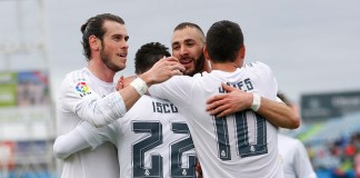 Sin el lesionado Cristiano Ronaldo, Gareth Bale asumió la responsabilidad goleadora por el Real Madrid y anotó dos tantos...