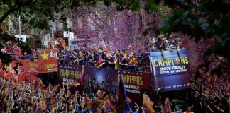 Miles de hinchas del Barcelona salieron ayer a las calles del centro de la Ciudad Condal para celebrar la conquista de...