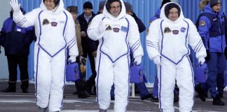 Una nave con tres astronautas de Rusia, Japón y Estados Unidos a bordo partió ayer de Kazajistán en un viaje de dos...