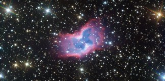 Como una mariposa, con una estructura simétrica, hermosos colores e intrincados patrones, esta burbuja de gas parece revolotear en...