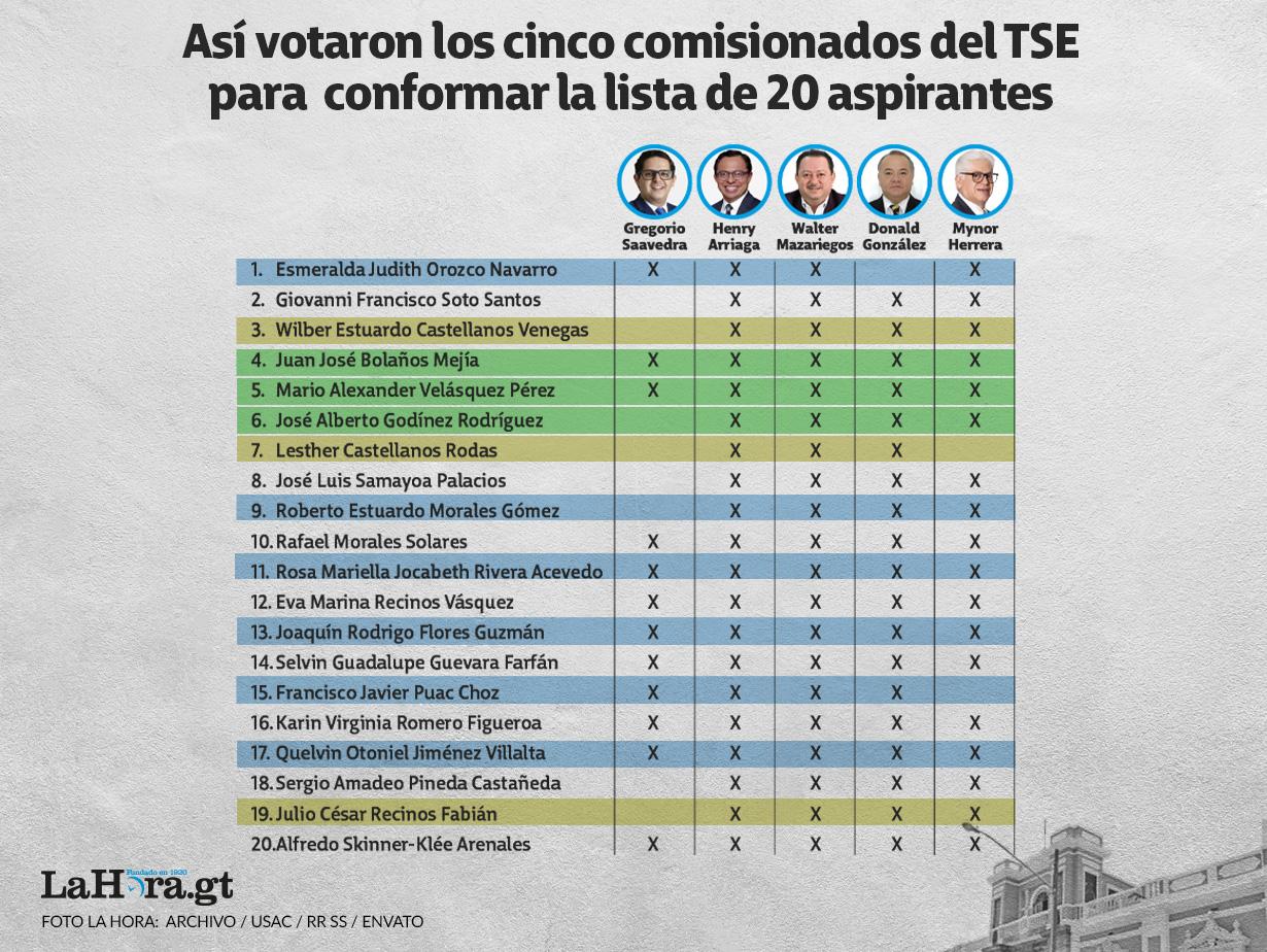 Luego de que la Embajada de Estados Unidos en Guatemala criticara en forma directa y tajante las postulaciones que se hicieron para integrar el Tribunal Supremo Electoral, afirmando que hubo “contaminación de narcos, de criminales o gente asociada con esas personas” y que su país no iba a tolerar que los designados “vayan a tener un lugar, una presencia de relevancia en esas posiciones tan importantes para la institucionalidad”, salen a luz los nombres de los postuladores que consistentemente votaron para la conformación de esa cuestionada lista final.
