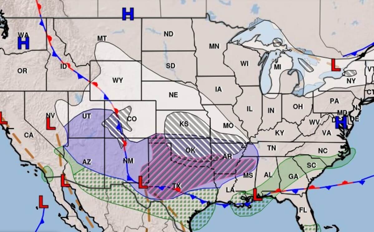 La tormenta invernal Fern amenaza a gran parte de Estados Unidos durante el fin de semana del viernes 23 al domingo 25 de enero. Foto La Hora: NWS