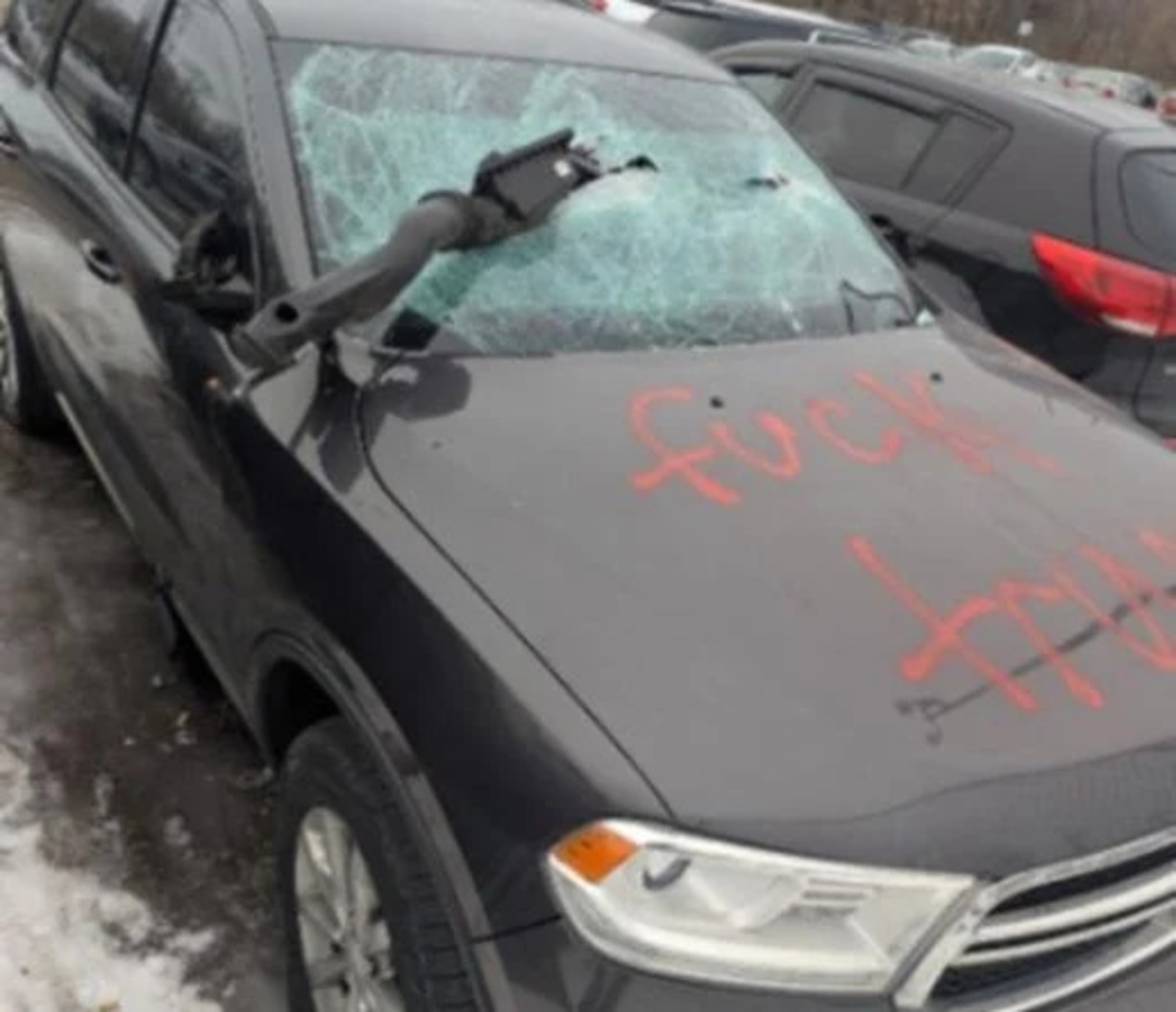 Las imágenes compartidas por el FBI muestran automóviles con vidrios rotos, daños visibles y grafitis, así como el interior de uno de los vehículos con señales de haber sido violentado.