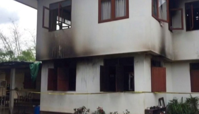 Rewat dijo que el incendio estalló en el nivel inferior del edificio, que se usa para actividades estudiantiles. El nivel superior es para los dormitorios. Es uno de dos internados en el campus que abarca unas 8 hectáreas. El otro dormitorio, ubicado en las cercanías y exclusivamente para varones, no fue tocado por las llamas, dijo Rewat.