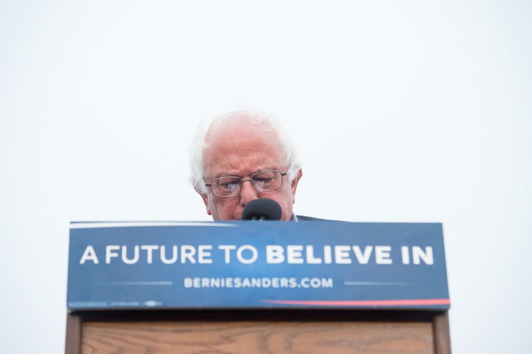 Horas después, en un mitin en Crissy Field en Presidio, Sanders evadió los reportes de The Associated Press y varios canales televisivos de que Clinton habría logrado los 2 mil 383 delegados necesarios para convertirse en la candidata demócrata. Clinton ha ganado mil 812 delegados en elecciones primarias y asambleas, y cuenta con el apoyo de 571 superdelegados.
