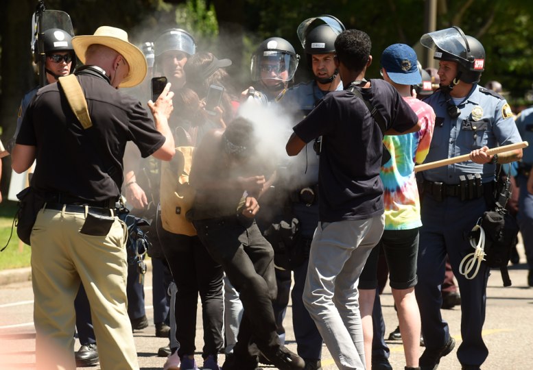 Los uniformados tuvieron que dispersar a los revoltosos que habían acampado frente a la mansión del gobernador.