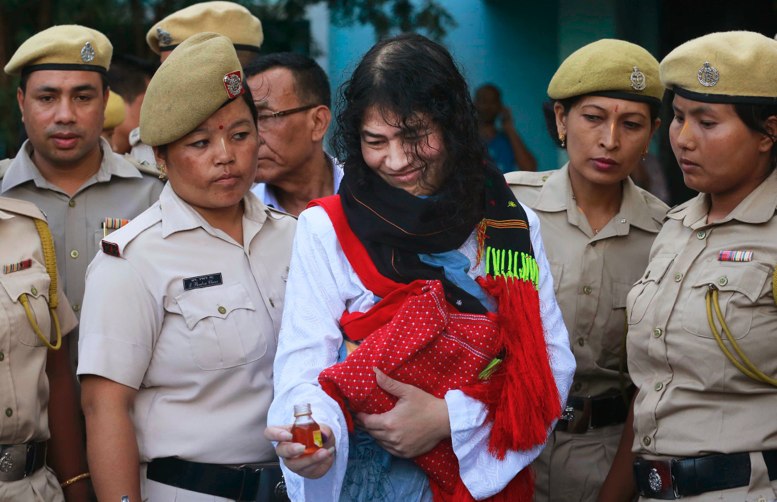La activista inició la huelga pocos días después de que 10 civiles fueron abatidos por fuerzas paramilitares en Manipur, que desde hace mucho tiempo ha sido plagada por alzamientos de grupos étnicos y ofensivas represivas por partes de las autoridades.