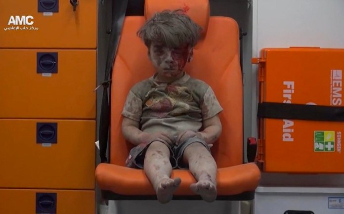 La imagen del aturdido niño de cinco años, sentado en una ambulancia cubierto de polvo y con sangre en la cara, capturó el horror que vive la sitiada ciudad.