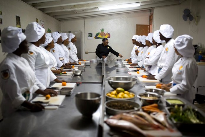 En una escuela de culinaria en el centro de Puerto Príncipe administrada por una agrupación sin fines de lucro de Andrés, y por el gobierno haitiano, jóvenes aprenden culinaria y cómo preparar platos que cautivan la vista y el paladar.