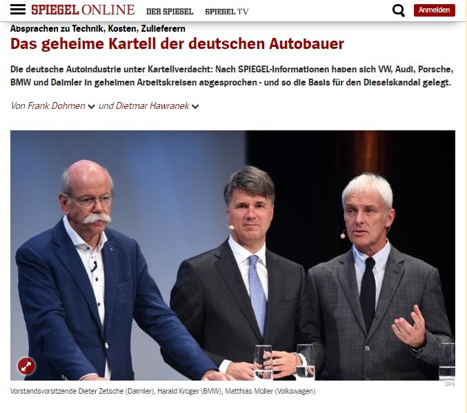 «Der Spiegel» indicó que de más de 200 trabajadores de las cinco fabricantes alemanas se reunían desde los años 90 de forma secreta para acordar detalles relativos al desarrollo de los automóviles, tanto de tipo tecnológico como referente al sistema de emisión de gases en vehículos diésel.