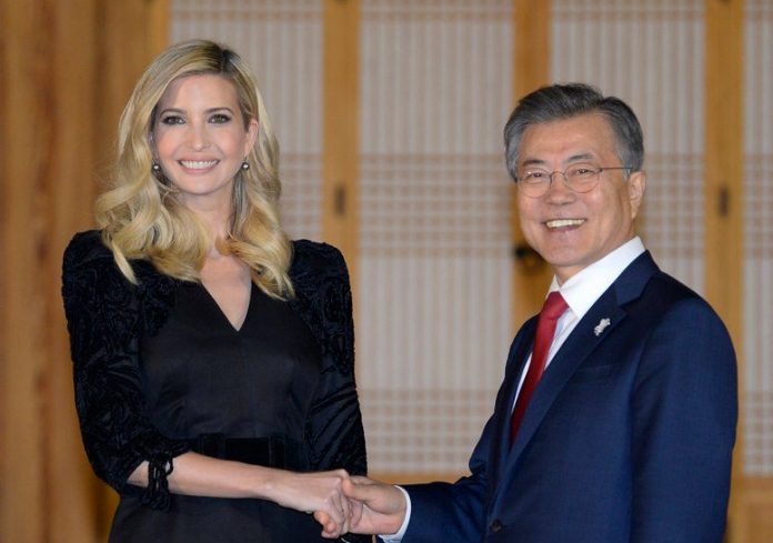 Ivanka Trump dijo hoy al Presidente de Corea del Sur que usará su visita a los Juegos Olímpicos de Invierno para abogar por la máxima presión para que Corea del Norte detenga su programa nuclear.