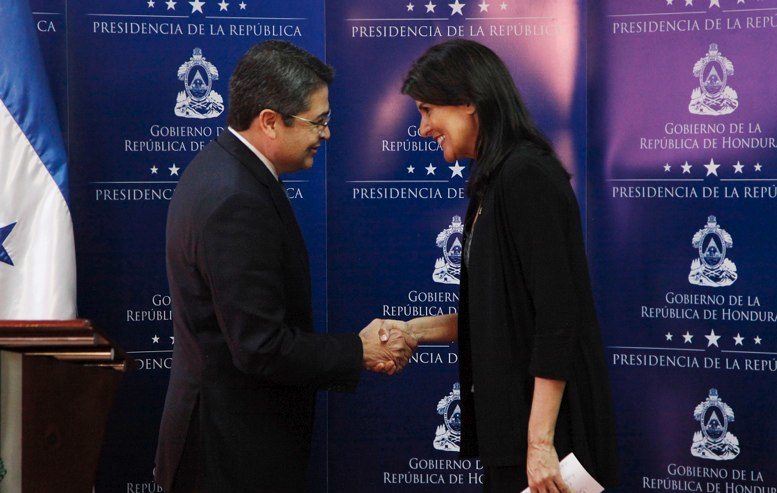 Haley se reunió ayer con Hernández y subrayó que Estados Unidos considera a Honduras “un excelente amigo”. Agradeció al gobierno de Hernández por ser uno de los pocos países que apoyaron la decisión de Estados Unidos de cambiar su Embajada a Jerusalén.