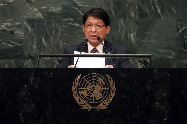 Moncada dio un discurso ante la 73 asamblea general de la Organización de Naciones Unidas (ONU) en representación de Ortega, quien canceló su participación prevista inicialmente el pasado 26 de septiembre.