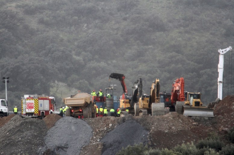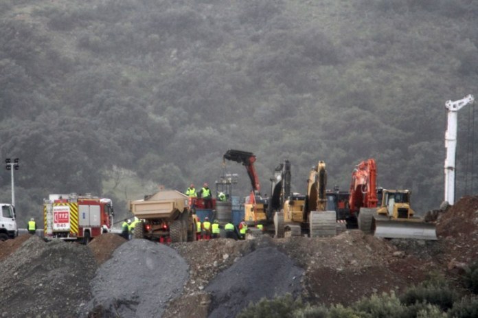 La perforadora ha alcanzado 53 metros. Al concluirse la perforación, mineros descenderán por el pozo para excavar una galería horizontal a la supuesta ubicación del menor.