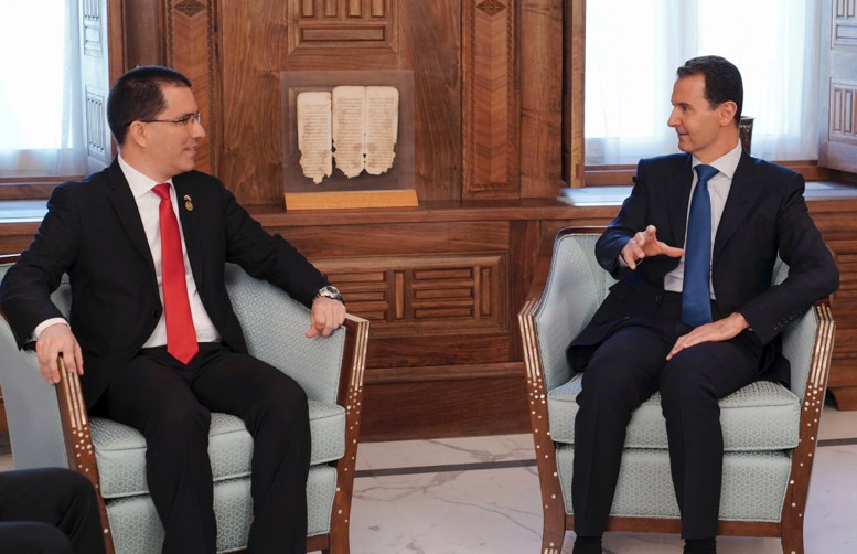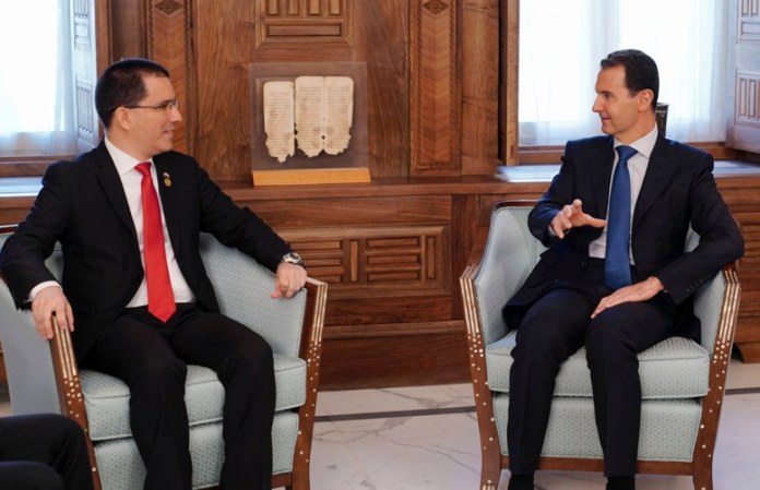 El gobierno de Venezuela ha tenido tradicionalmente relaciones cálidas con el gobierno del presidente Bashar Assad. Arreaza se reunió con Assad más tarde el jueves, tras lo cual dijo que tanto Damasco como Caracas enfrentan el mismo enemigo y resisten con la misma voluntad popular.