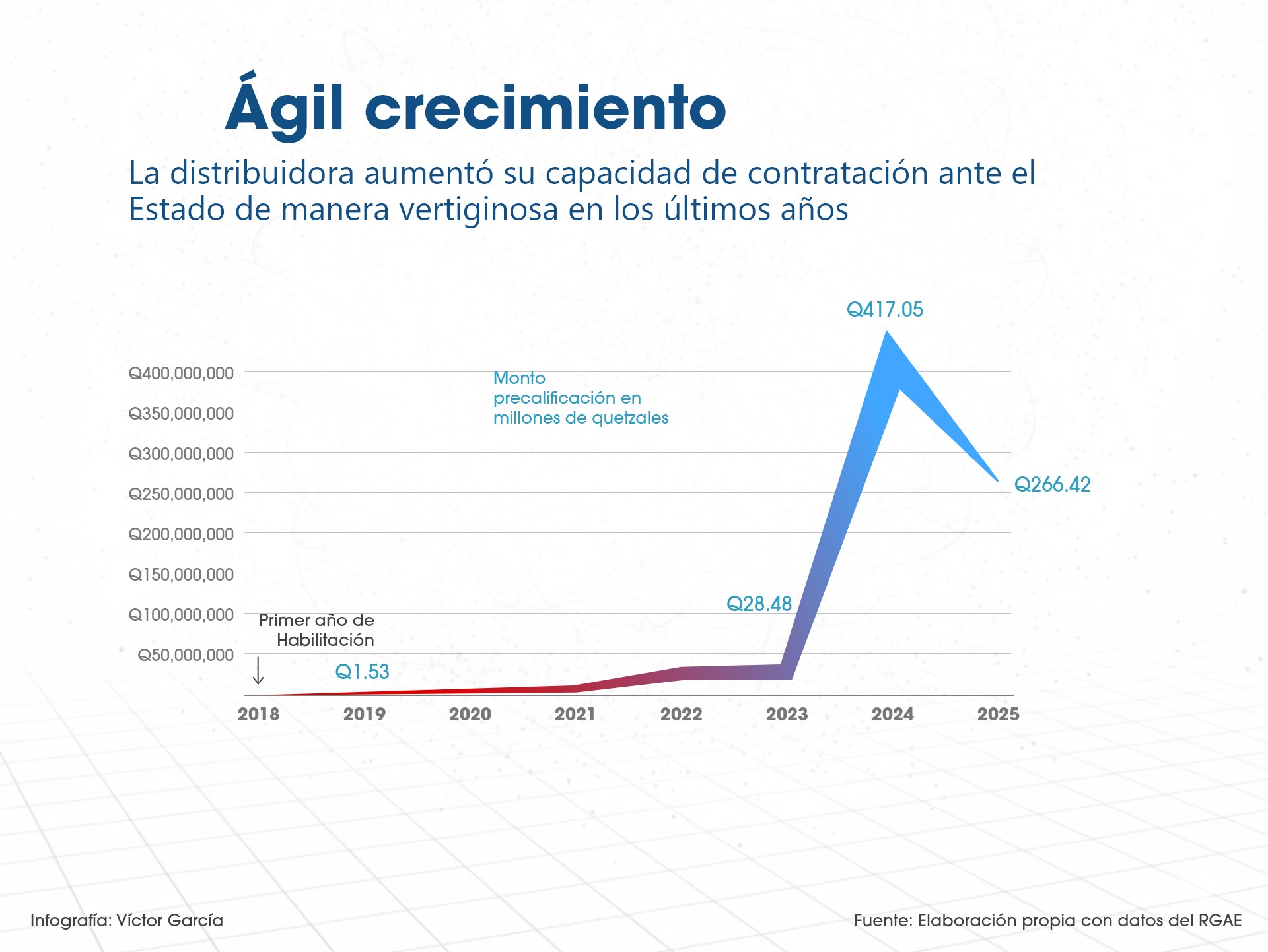 Según registros de Guatecompras, la empresa saltó de facturar al Estado Q1.3 millones a la cifra récord de Q153.2 millones en apenas doce meses. En términos operativos, Siloe logró multiplicar su capacidad de venta 115 veces de un año para otro, tendencia que levanta interrogantes sobre la naturaleza de este repentino éxito.