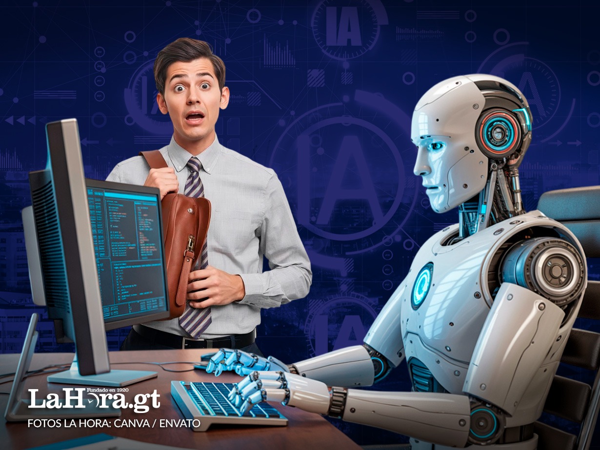 Representación de empleos en riesgo por la IA. Arte La Hora: Alejandro Ramírez
