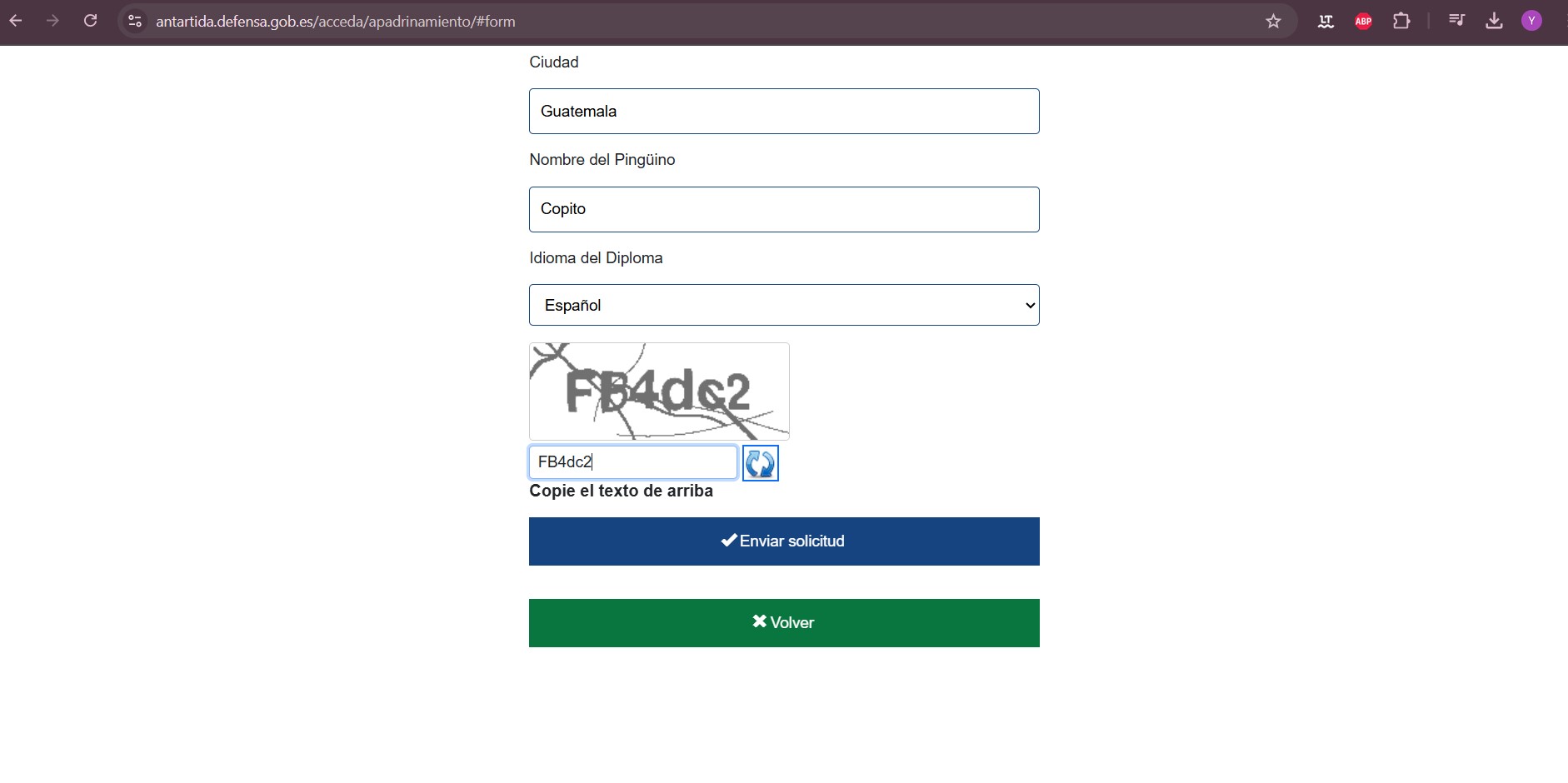 6. Finalmente, hacen llegar el diploma con la foto, nombre y número se registró del pingüino apadrinado, el diploma estará debidamente sellado y firmado por le Gobierno de España.