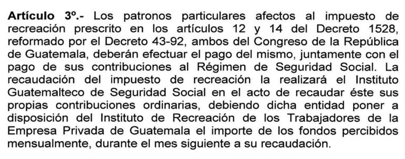 Cabe resaltar que, conforme al Acuerdo 1-2023, el aporte del IRTRA que es el 1%, lo entrega el patrono al IGSS, entidad encargada de trasladarlo a su destino final.