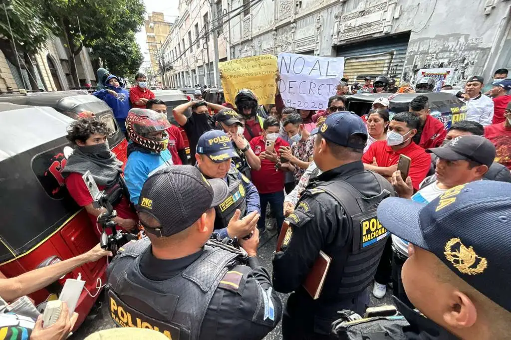 A las afueras del Congreso, manifestantes parte de organizaciones civiles, motoristas y mototaxistas acudieron a su rechazo al Decreto 9-2025, reformas a la Ley de Protección y Mejoramiento del Medio Ambiente.
