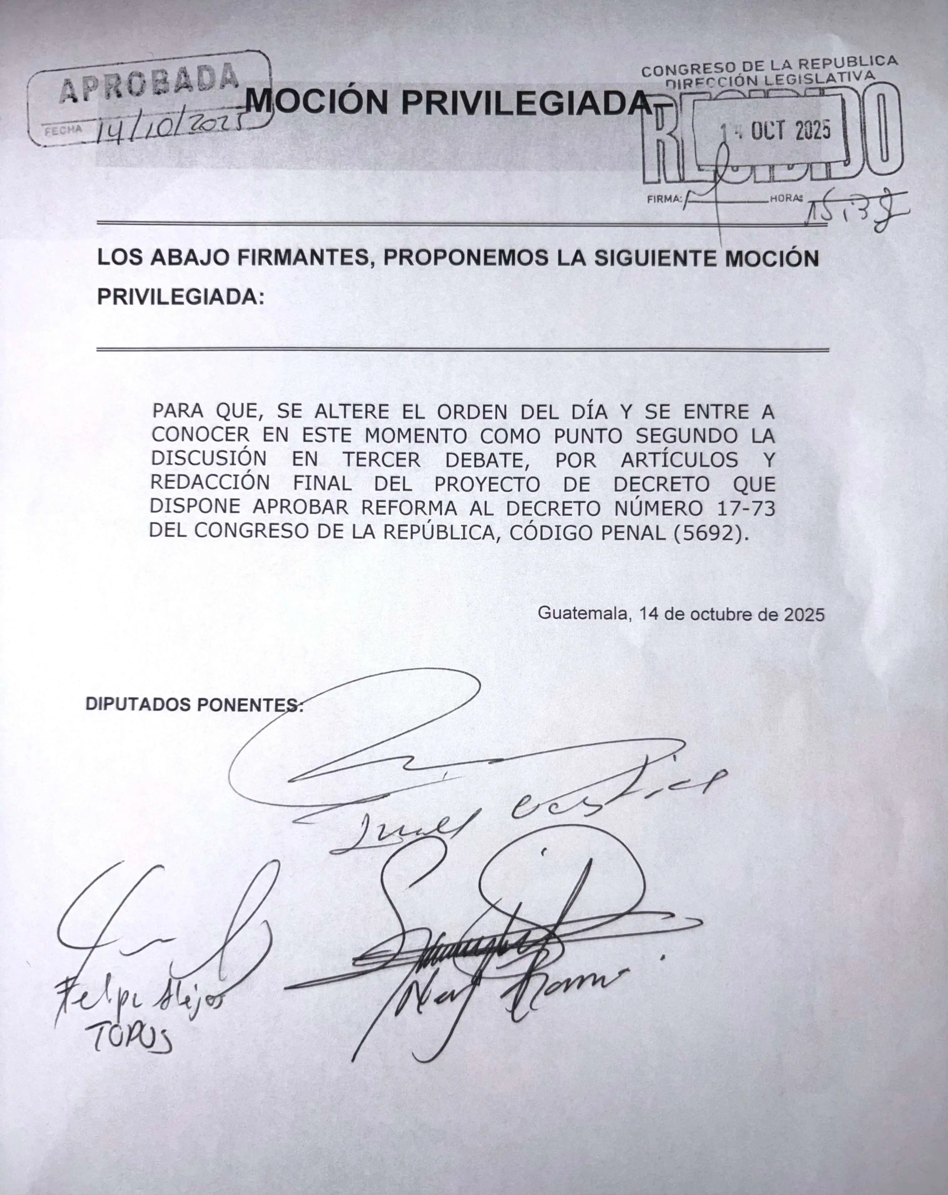 Este martes 14 de octubre, se celebra Sesión Plenaria en el Congreso de la República, teniendo como característica principal que se llevará a cabo en secreto, para abordar tercera lectura y aprobación final de la iniciativa de ley 5692 para el combate de maras y pandillas, promovida por el expresidente Alejandro Giammattei y que ha recibido enmiendas por las recientes propuestas, como la Ley Antipandillas presentada por el Ejecutivo.