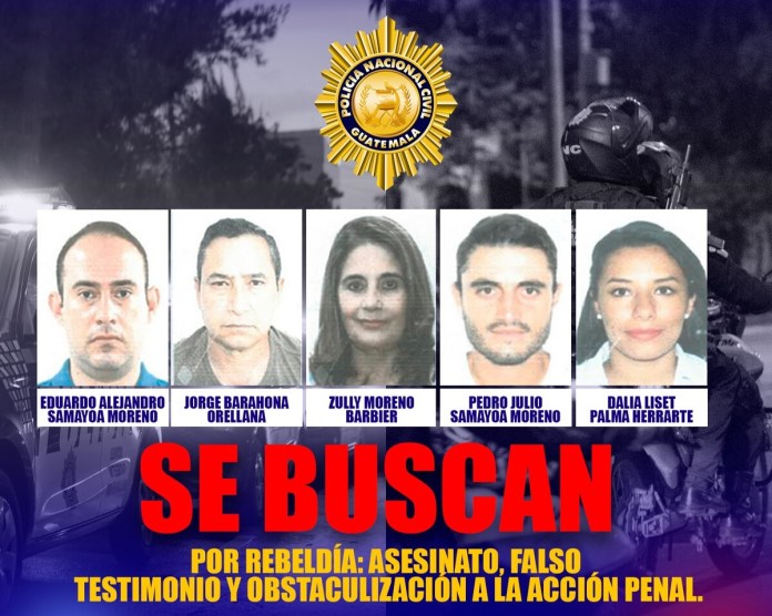 Los buscados son Eduardo Alejandro Samayoa Moreno, Jorge Barahona Orellana, Zully Moreno Barbier, Pedro Julio Samayoa Moreno y Dalia Liset Palma Herrarte y/o Dalia Liset Palma Herrarte de Ljungströmmer.