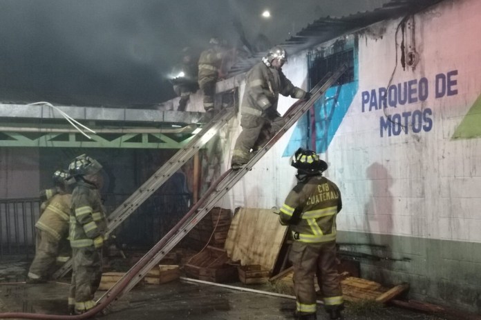 Incendio consume locales comerciales en el mercado Carolingia, en Mixco