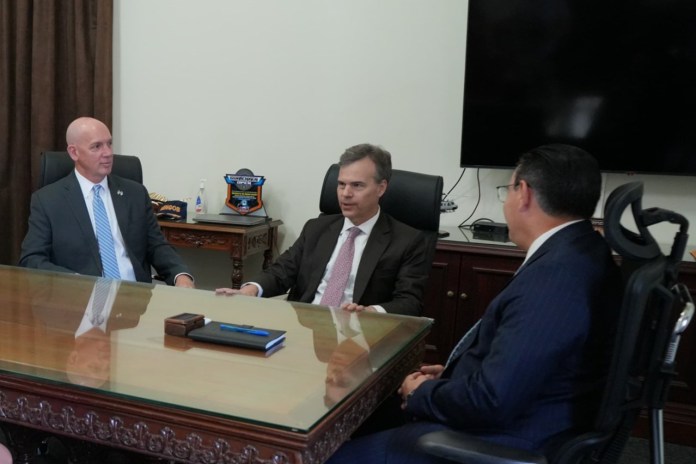 Durante el encuentro, las autoridades sostuvieron un diálogo para fortalecer la cooperación conjunta en materia de seguridad. En dicha reunión, participó el encargado de negocios saliente, Barrett, y Kelly Hapka, representante de la oficina INL.