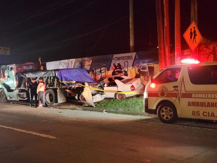Elementos del CVB asistieron, en horas de la madrugada, a los cuatro primos que viajaban en el vehículo, que colisionó contra la parte trasera del camión en el kilómetro 15.5 de la ruta al Atlántico, también conocida como CA-9 Norte.