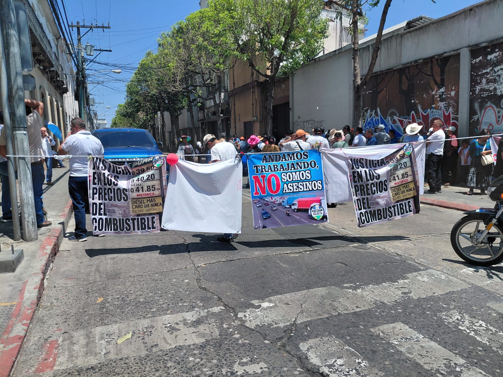Otro grupo de transportistas bloquea el paso vehicular por la 8a avenida de la zona 1, frente al Congreso de la República.