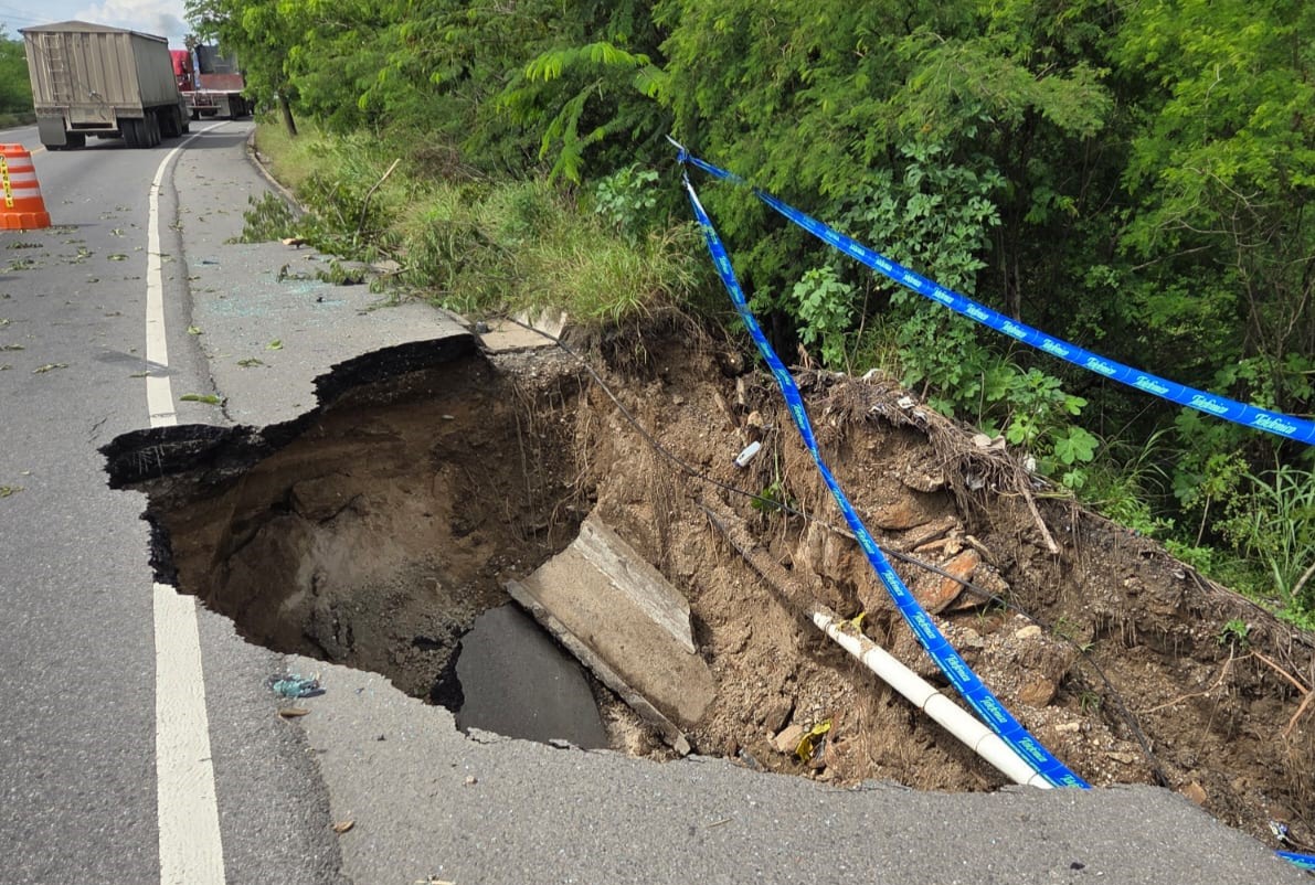 El socavamiento ocurrió en el km 134, jurisdicción de Río Hondo, Zacapa. Foto La Hora: Conred.