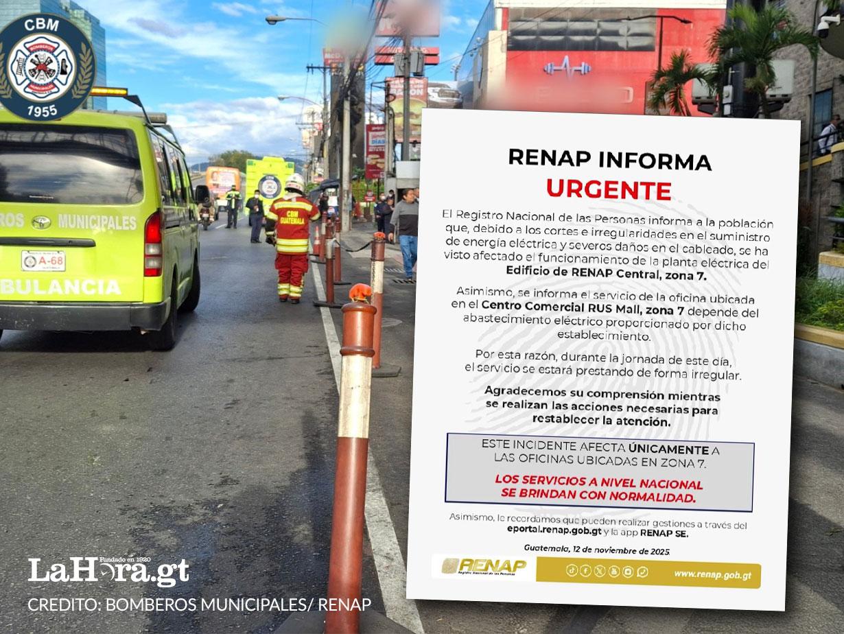 Esta situación afecta únicamente a las oficinas ubicadas en la zona 7, por lo que el servicio en las demás sedes del RENAP se mantiene con normalidad.