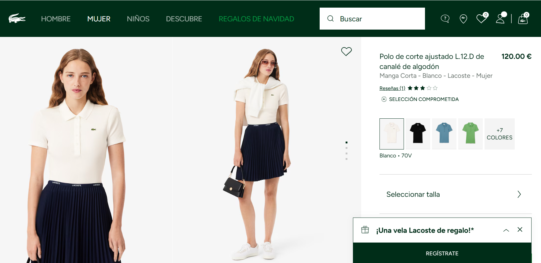 Es una blusa blanca de algodón, austera y lo único que resalta es el lagarto bordado, logo de la referida marca, tiene un valor entre los 110 euros (Q981.09) a 120 euros (Q1 mil 070.28), dependiendo si es la versión entallada o la holgada, según se muestra en el portal oficial de Lacoste.