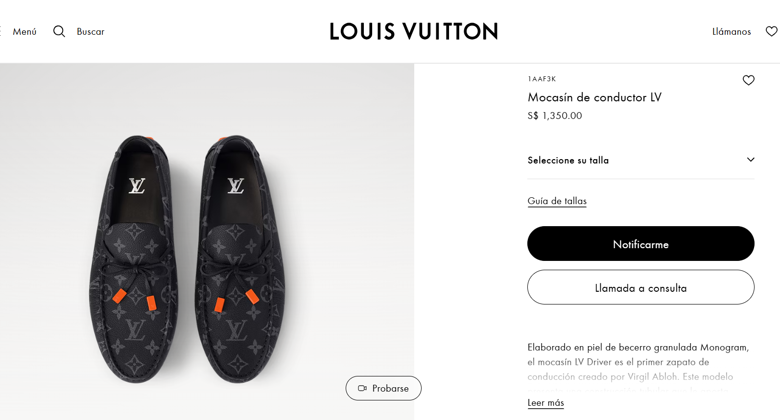 Estos zapatos tienen un valor de Q5 mil 950, según el portal de la citada firma.