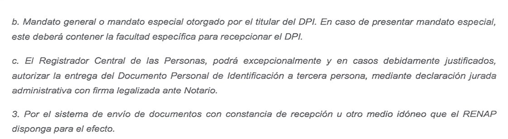 Y es que el Renap anteriormente permitía que el DPI fuera entregado al titular del documento, a terceras personas y por un medio de envío que fuera autorizado. Sin embargo, estas opciones siguen vigentes, pero se ampliaron y detallaron el proceso.