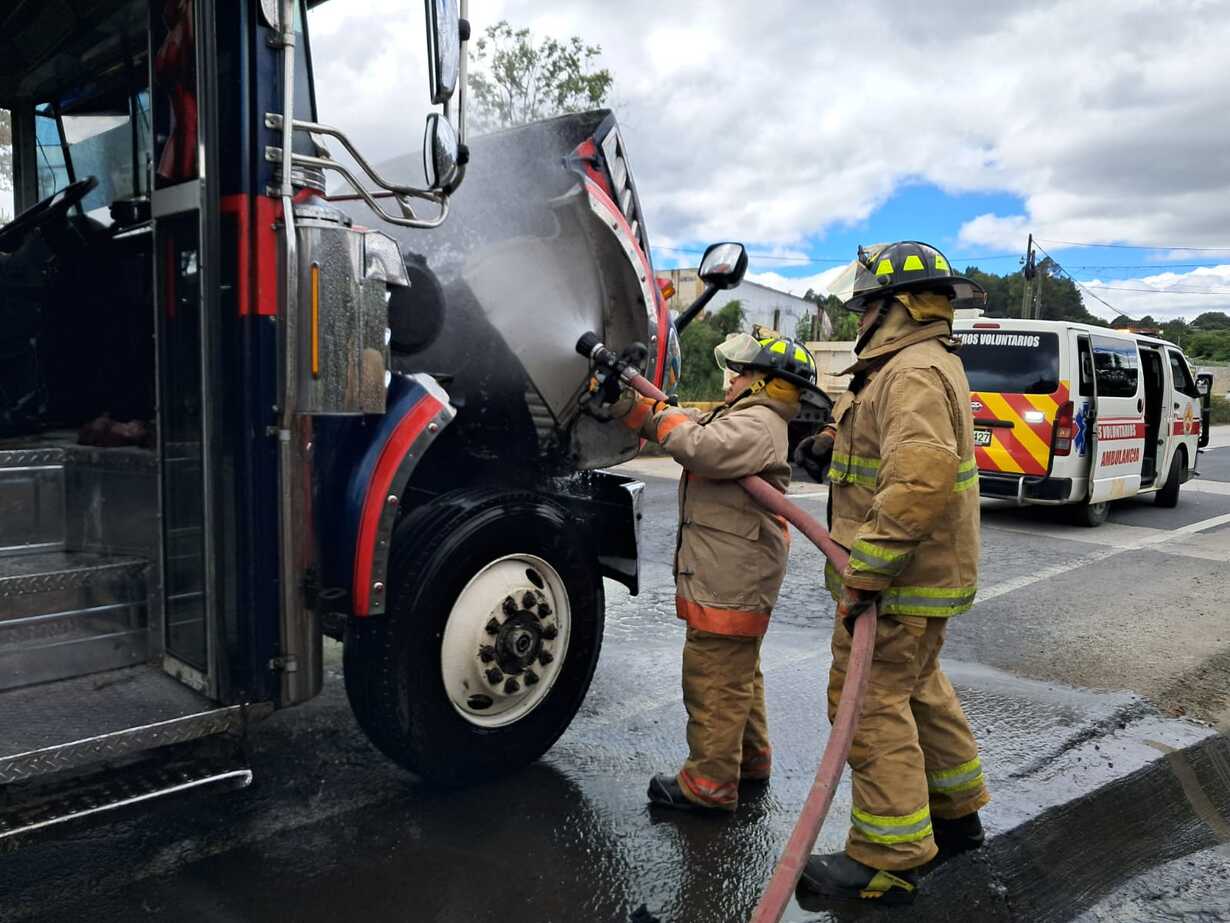 Las llamas consumieron de forma parcial la parte delantera del vehículo, pero la rápida intervención de los socorristas de la compañía de Chimaltenango permitió extinguir el fuego antes de extenderse a toda la unidad.