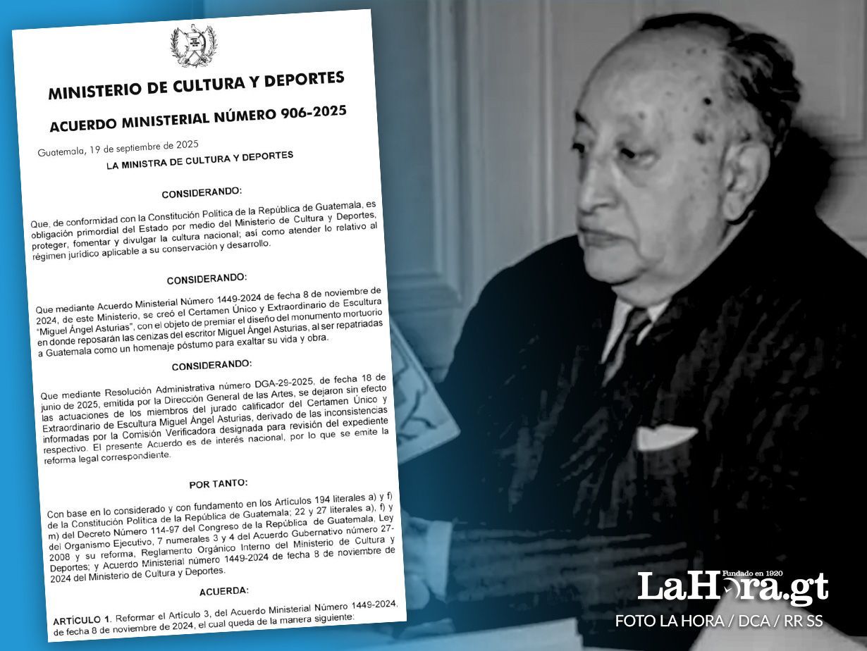 El Ministerio de Cultura y Deportes (MCD), mediante el Acuerdo Ministerial 856-2025, hizo una actualización al Premio Nacional de Literatura Miguel Ángel Asturias, que reconoce la trayectoria de los escritores del país y concederá a partir de ahora un reconocimiento de USD 10 mil 500 al ganador.
