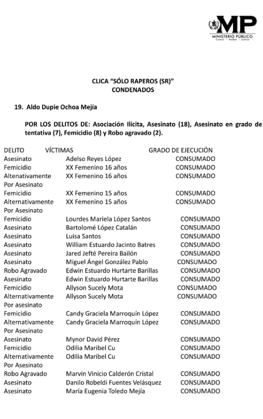Sin embargo, también suma delitos por femicidio, robos y asociación ilícita, entre otros.