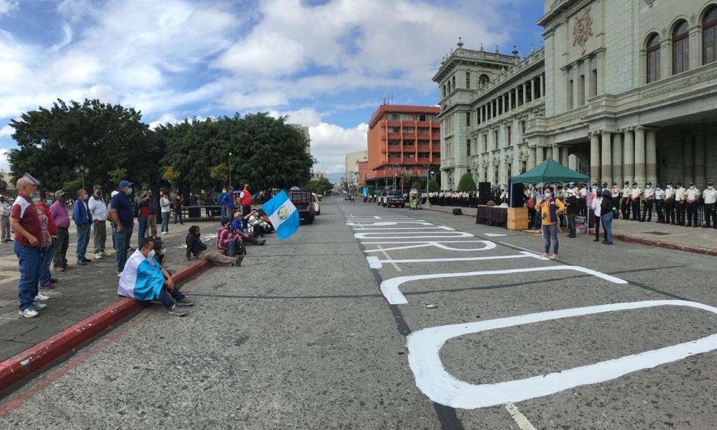 Algunas personas comienza a llegar a la Plaza de la Constitución para la manifestación #28N, mientras que agentes de la PNC ya resguardan los alrededores del Palacio Nacional.Fotos: La Hora/María España pic.twitter.com/YhEn1Yj7AM