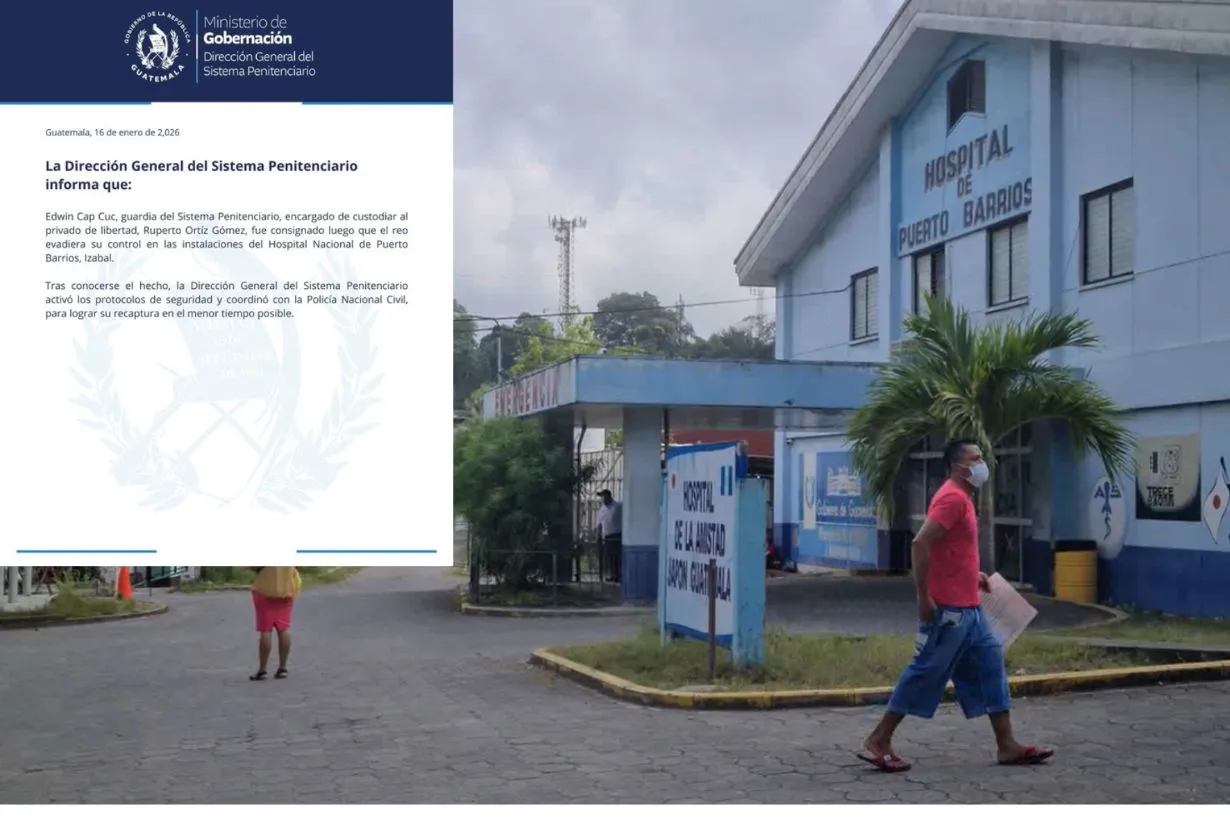 De acuerdo con la DGSP, Ortiz logró evadir el control de seguridad a cargo de Cap Cuc en las instalaciones del Hospital Nacional de Puerto Barrios, Izabal.