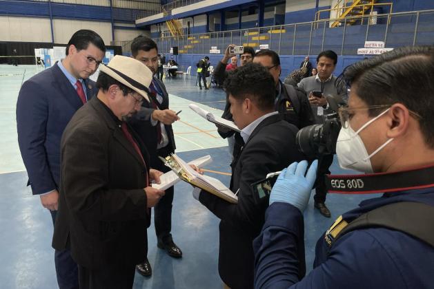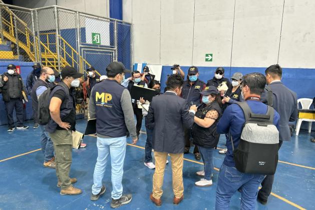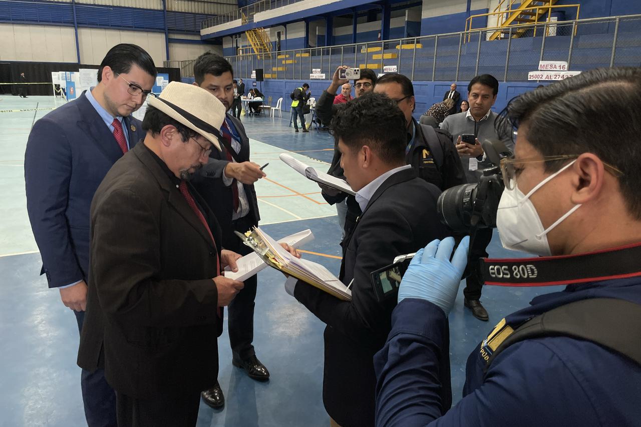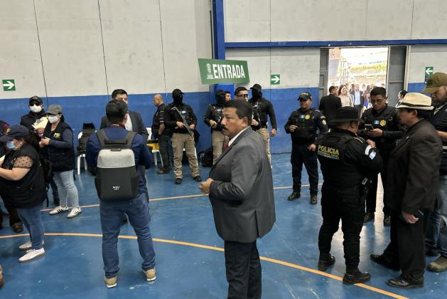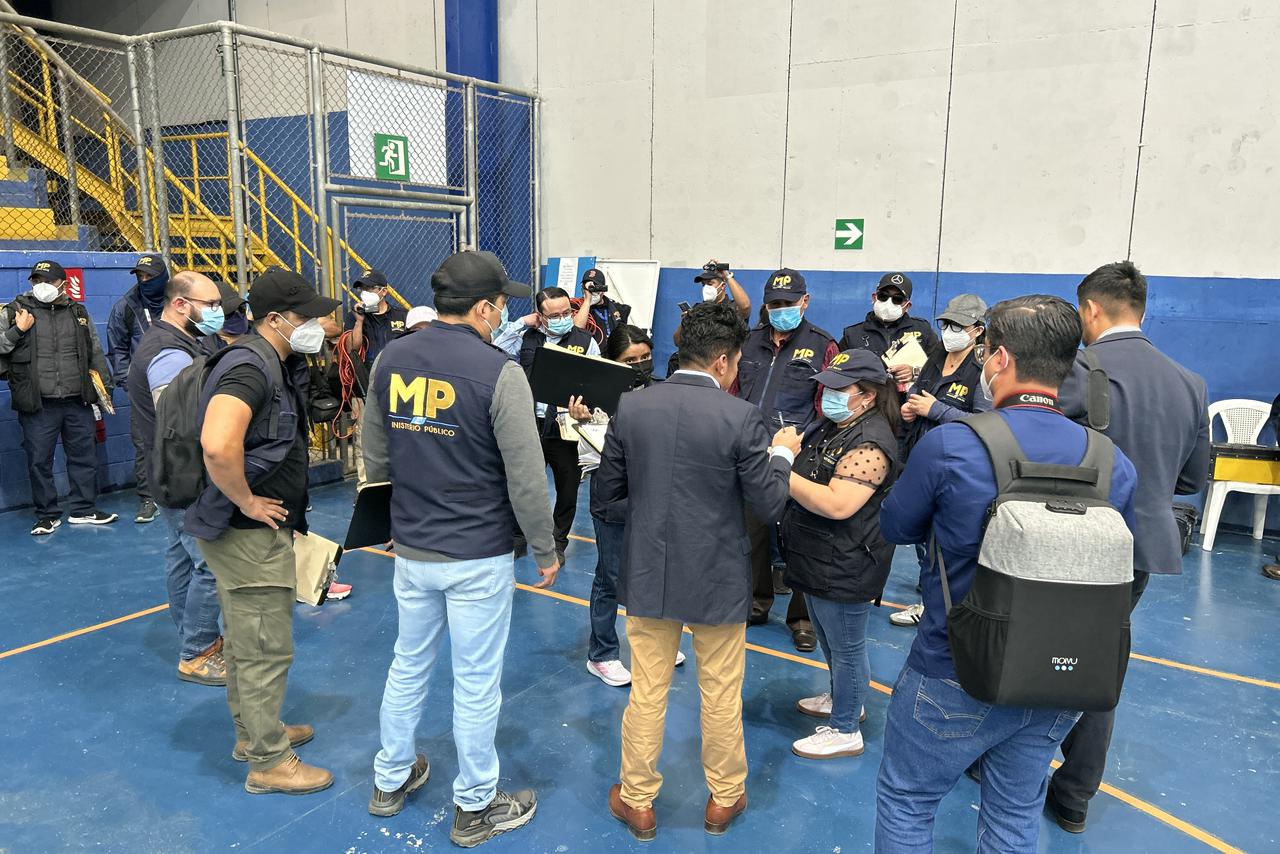 La fiscal Leonor Morales, de la Fiscalía de Delitos contra Operadores de Justicia del MP, encabeza el operativo junto a agentes de la Policía Nacional Civil (PNC) en el centro de votación del Colegio de Abogados y Notarios de Guatemala (CANG), en el Club La Aurora, zona 13.