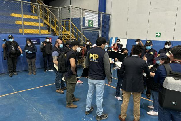 Al menos 30 agentes, entre el MP y PNC, se han hecho presentes a la sede del parque Erick Barrondo para realizar una diligencia en medio de las elecciones del CANG. Foto La Hora: José Orozco