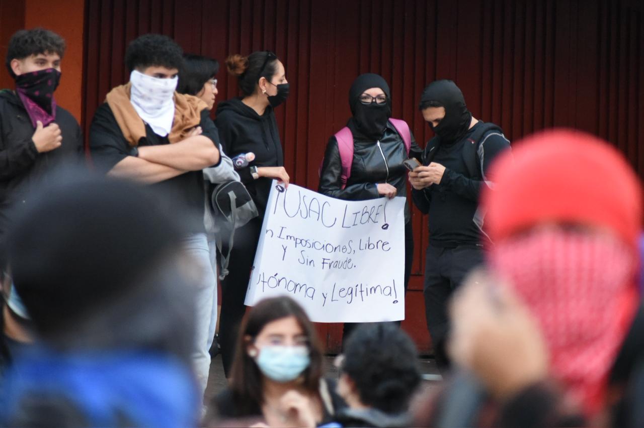 Los estudiantes señalan que durante la elección de rector celebrada en el Hotel Casa Santo Domingo en Antigua Guatemala, se impuso de forma fraudulenta a Walter Mazariegos como rector, a través del veto a la participación de 16 cuerpos electorales de oposición, a quienes se les negó acreditación.