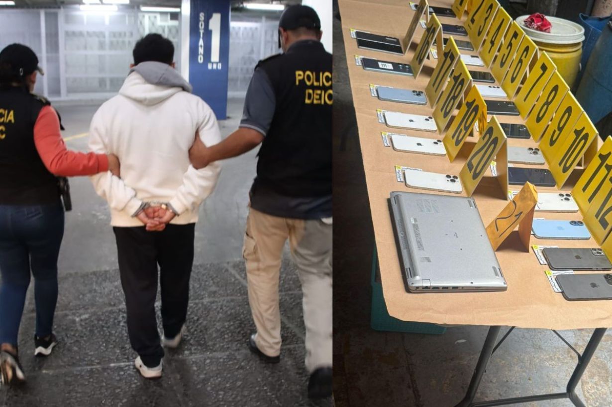 El allanamiento efectuado por la Policía Nacional Civil (PNC) y la Fiscalía contra el Crimen Organizado del Ministerio Público (MP) en la colonia Landívar, zona 7, dejó como resultado la captura de una persona y la incautación de 20 celulares con reporte de robo, una computadora portátil y 18 tarjetas SIM.