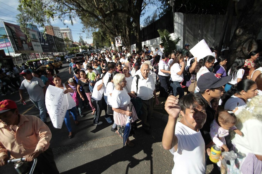 En buses y con una especial coordinación, unas 400 personas vestidas de blanco llegaron poco a poco a la sede de la Comisión, ubicada en la zona 14 capitalina, portando pancartas con mensajes críticos hacia la gestión de Velásquez.