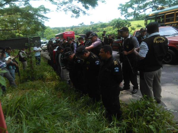 Jorge Aguilar, vocero de la PNC, informó que los detenidos son el oficial Erick Manfredo Hernández Valdez y los agentes Carlos Orellana, Melvin Francisco Rodríguez Grajeda, Pedro Cali Ajuchan, Jonathan Zacallon Ortiz, Edgar Olivares Pérez, César Amílcar Bran y Hugo Dalí López.