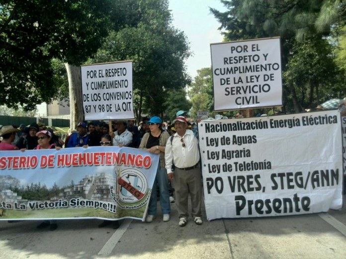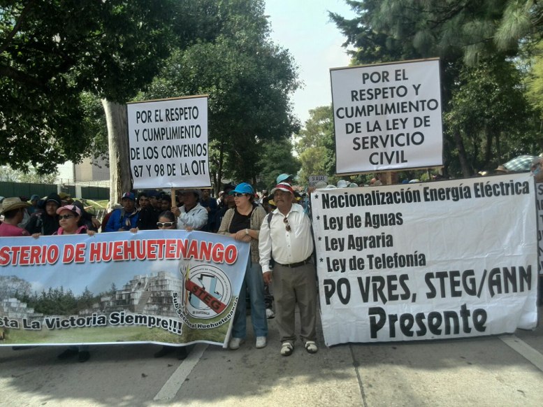 Otra jornada de protestas se vivió esta mañana cuando miembros del Sindicato de Trabajadores de Educación de Guatemala (STEG) y el Sindicato Nacional de Trabajadores de Salud (SNTSG), entre otros, afines a Joviel Acevedo, marcharon en una manifestación pacífica desde El Obelisco hacia el Congreso, con el objetivo de defender los pactos colectivos, la libertad sindical, la aprobación de la Ley de Desarrollo Rural y la nacionalización de la Energía Eléctrica.