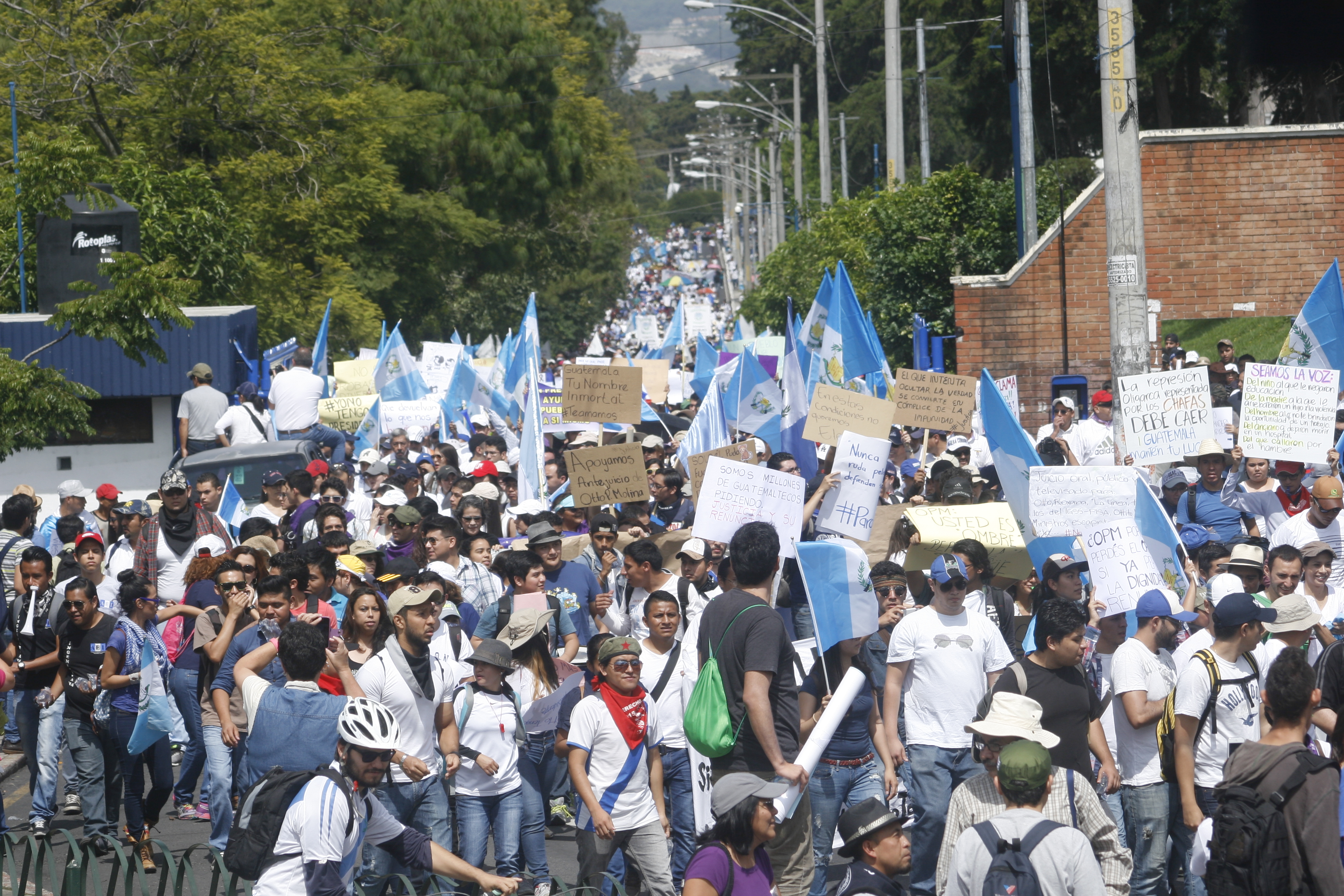 Los centros de estudios superiores más importantes del país, la Universidad de San Carlos de Guatemala (USAC), la Universidad Rafael Landívar (URL) y la Universidad del Valle de Guatemala (UVG), suspendieron clases para que sus estudiantes pudieran participar en la marcha pacífica que tiene como punto de reunión el parque central, frente al Palacio Nacional de la Cultura.