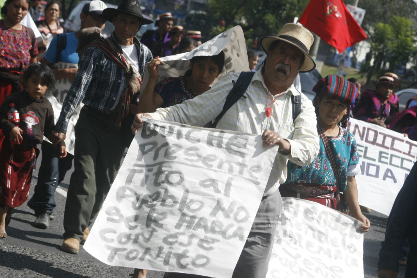 Al menos unos mil integrantes del Comité de Unidad Campesina (CUC), organización que forma parte de la Asamblea Social y Popular, iniciaron su recorrido desde el Trébol hacia el Obelisco, para dirigirse a la Avenida Reforma rumbo a la Corte Suprema de Justicia (CSJ) y luego al parque central, donde se espera que confluyan los miles de manifestantes que piden la renuncia del presidente Otto Pérez.