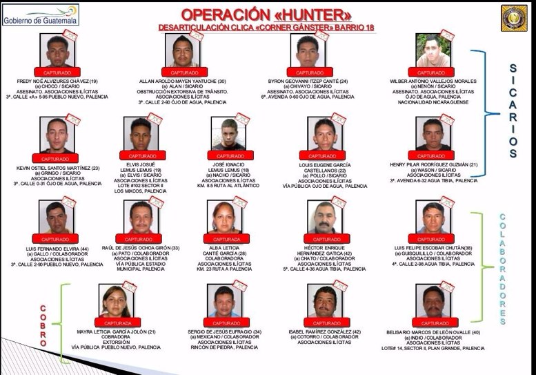Dieciocho personas fueron detenidas, sindicadas de conformar una estructura de extorsiones y asesinatos en contra de transportistas, conductores de mototaxis y pilotos de camiones. La banda se habría agenciado de más de Q2 millones en 6 años.